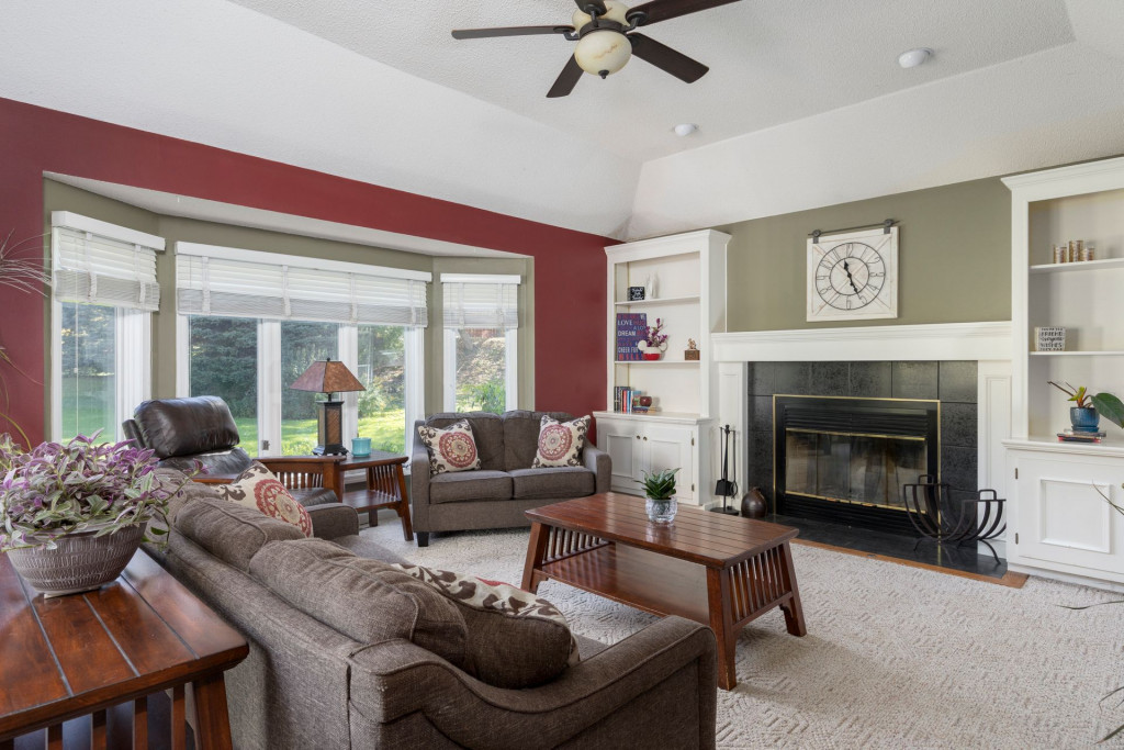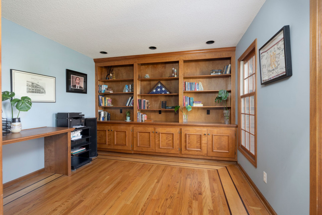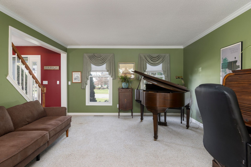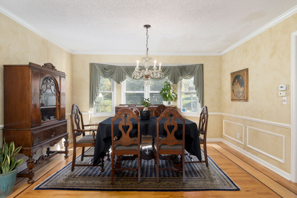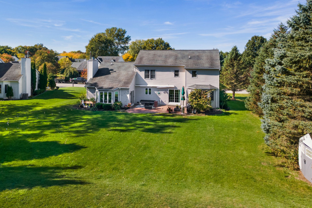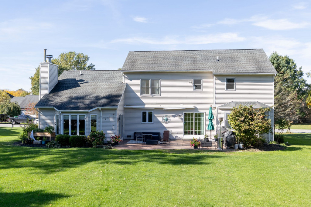 Welcome to 103 Burbank Drive, an elegant center entrance Colonial located just steps from the charming Village of Orchard Park. This beautifully maintained home combines classic architectural details with modern comfort and thoughtful design. Step inside the spacious foyer and you’ll immediately appreciate the generous room sizes and quality craftsmanship throughout. The oak hardwood floors with cherry and maple inlays add warmth and sophistication, setting the tone for the rest of the home. A large office provides the perfect space for remote work or study. The formal living and dining rooms feature crown molding and wainscoting, ideal for entertaining or hosting holiday gatherings. The bright white kitchen includes an island, casual dinette, and a sliding glass door that opens to a stamped concrete patio with a retractable awning—a perfect spot for morning coffee or evening relaxation. Adjacent, the expansive family room impresses with a vaulted ceiling, fireplace, large bay window, and another sliding door that fills the space with natural light and connects effortlessly to the backyard. Convenient features include a mudroom entry from the garage, coat closet, and first-floor laundry. Upstairs, the primary suite offers a peaceful retreat with a cathedral ceiling, abundant natural light, and a spacious feel. Three additional bedrooms and a well-appointed hall bath provide comfort and versatility for family or guests. The partially finished basement is a true highlight, featuring a custom reclaimed quarter-sawn white oak bar, perfect for casual entertaining or game day gatherings. Outside, the private backyard overlooks a dry detention pond—no rear neighbors—and even includes a par-three golf pin and a convenient cut-through path to the village. Charming, spacious, and perfectly located, 103 Burbank Drive offers the best of Orchard Park living—classic style, modern amenities, and a peaceful setting just minutes from shops, restaurants, and parks.