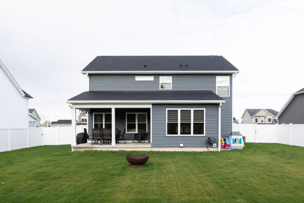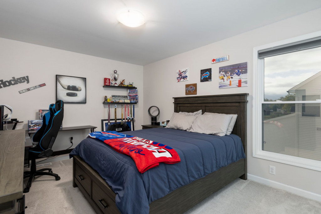 Why build when you can move right into this brand new Marrano home loaded with upgrades on one of Greenspring Reserve’s premier lots? The gorgeous white kitchen features quartz countertops, subway tile backsplash, stainless steel appliances, island with microwave drawer and seating for four, and a walk-in pantry. Directly adjacent to the kitchen is an amply sized dinette with a picturesque view of the private backyard with nothing behind you, and access via sliding glass door to the covered concrete porch. The spacious living room features loads of natural light and a gas fireplace with tile surround and painted mantel. The entire first floor boasts gorgeous wide plank, white oak luxury vinyl plank, and the flexible living room / den / playroom is a quiet retreat that also includes a convenient closet. The primary suite features large his and her walk-in closets as well as an en-suite primary bath with double vanity, quartz countertops, and a full tiled shower. Three more good-sized bedrooms complete the upstairs as well as a spacious laundry room with window to the backyard, and a main bath with double vanity, quartz countertops, and tiled shower / tub. Additional improvements include a fully fenced backyard and tasteful window treatments. The full basement is great for storage and also features an egress window allowing it to easily be finished off. Town of West Seneca and Orchard Park schools, there is nothing for you to do but move in and enjoy!
